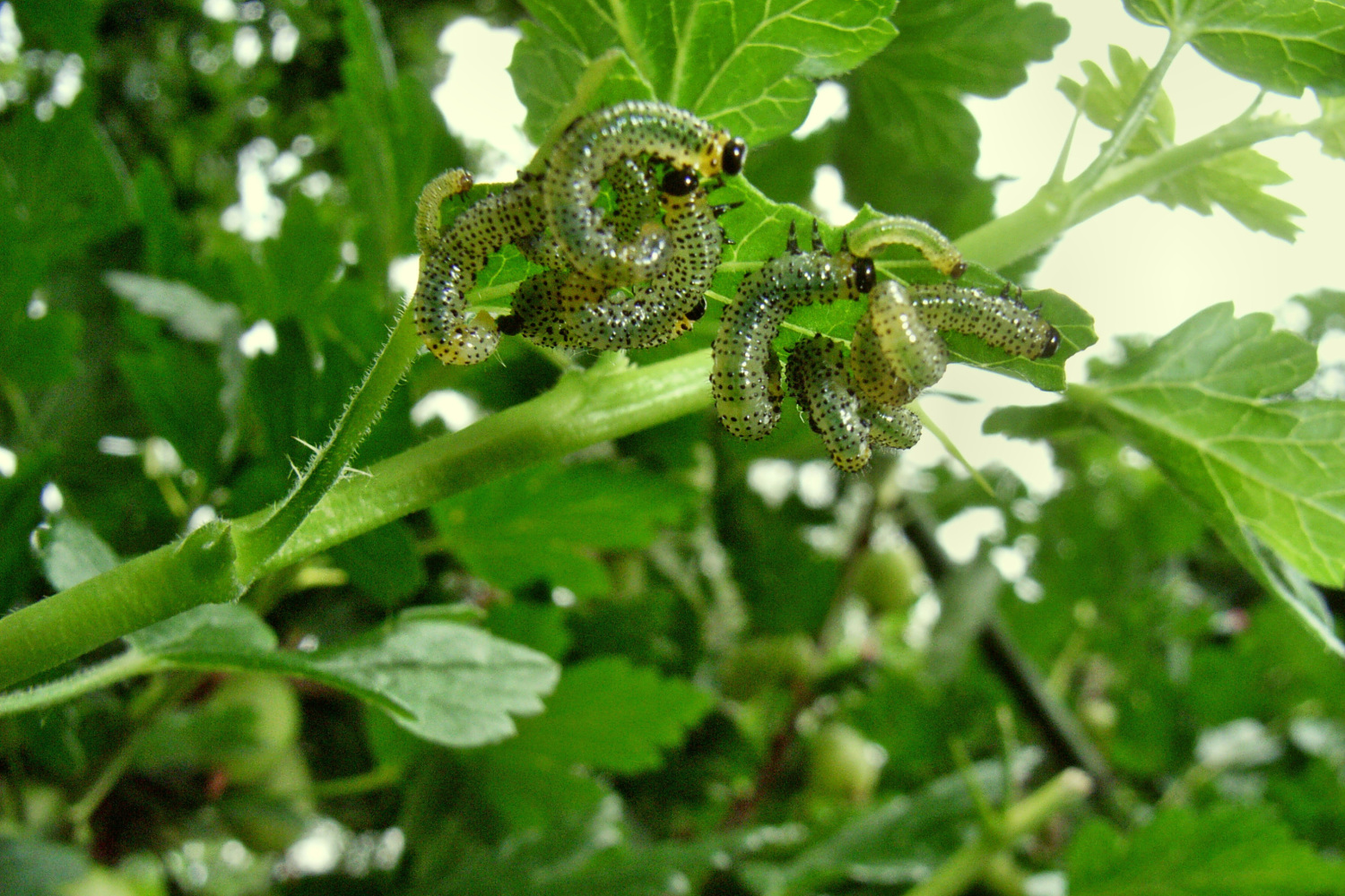 Die Beschreibung passt auf spezielle Blattwespen. Sowohl die gelbe als auch die schwarze Stachelbeerblattwespe kommen an Stachelbeeren und auch an Johannisbeeren gleichermaßen vor. Da Blattwespen meist binnen weniger Tage einen intensiven Fraß verursachen, sollte man den Befall rechtzeitig erfassen. Denn nur bei Anwesenheit der Räupchen lohnen Gegenmaßnahmen. Sind die Raupen bereits zu Boden gefallen und beginnen sich hier zu verpuppen, lohnt nur noch ein leichter Rückschnitt und die Hoffnung auf üppigen Neutrieb. Gefundene Raupen können rechtzeitig abgesammelt, abgeklopft oder mit einem Pflanzenschutzmittel gegen beißende Insekten gespritzt werden. Vorzugsweise sollten Präparate mit dem Wirkstoff Pyrethrine eingesetzt werden.