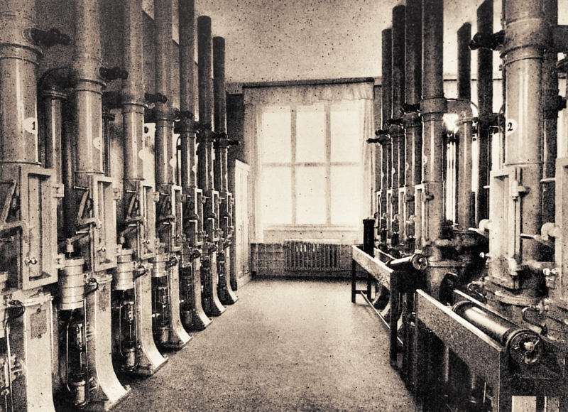 Das einzige Fördermittel, bei dem sich waagerechte und senkrechte Förderstrecken ohne verwickelte Übergangseinrichtungen beliebig aneinander reihen ließen, war die in dieser Art in Europa einzigartige Rohrpost. Es wurde nach dem größten, 1500 bis 2000 g wiegenden Aktenstück ein Rohrdurchmesser von 150 mm gewählt. Die Fahrrohre bestanden aus schmiedeeisernen Rohren.