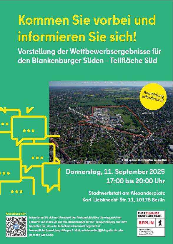 Einladung zur Vorstellung der Wettbewerbsergebnisse für den Blankenburger Süden - Teilfläche Süd