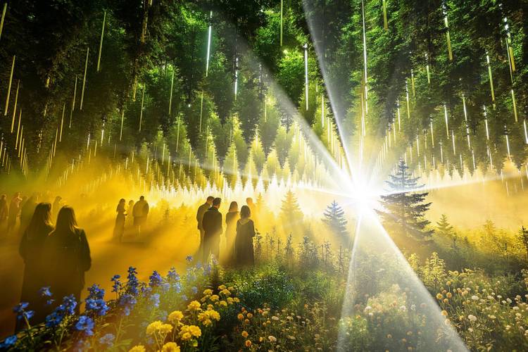 Davon inspiriert entfaltet Forest Seasons alle 45 Minuten einen dynamischen Jahreskreis, der Frühling, Sommer, Herbst und Winter immer wieder neu erzählt. Licht, Farbe und Bewegung spiegeln Neubeginn, Wachstum, Abschied und Ruhe. Natur als Resonanzraum menschlicher Empfindungen.