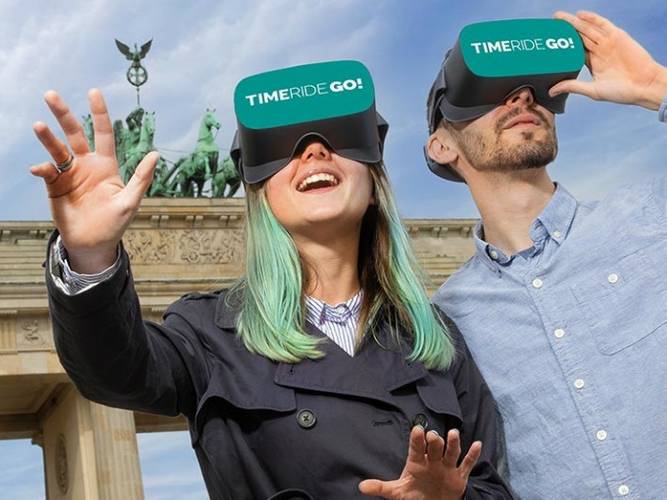 TIMERIDE GO! ist ein emotionaler Virtual-Reality-Stadtrundgang durch die dramatische Geschichte Berlins im 20. Jahrhundert. Euer persönlicher Guide führt euch auf der rund 90-minütigen Tour zu den zentralen Schauplätzen des 20. Jahrhunderts. An ausgewählten Stationen setzt ihr eine mobile VR-Brille auf und erlebt hautnah, wie dieser Ort einst ausgesehen hat – der perfekte Früher-Heute-Vergleich.
