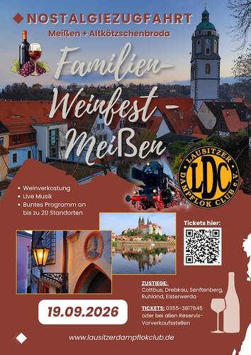 Bitte beachten Sie, das in Radebeul-Altkötzschenbroda meistens immer ein Eintritt fällig wird. Die Anreise von Meißen bis nach Radebeul-Kötzschenbroda und zurück kann mit der S-Bahn erfolgen. Unser Sonderzugticket gilt nicht in der S-Bahn!