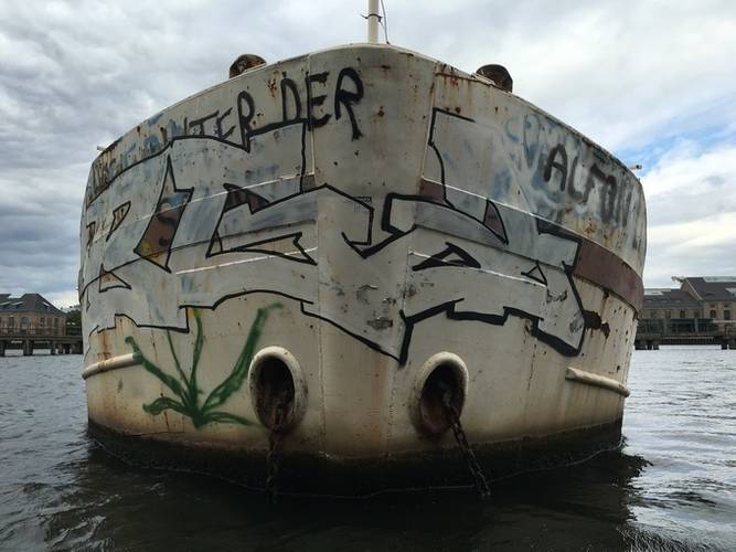 • Schiffswrack Dr. Ingrid Wengler in der Spree