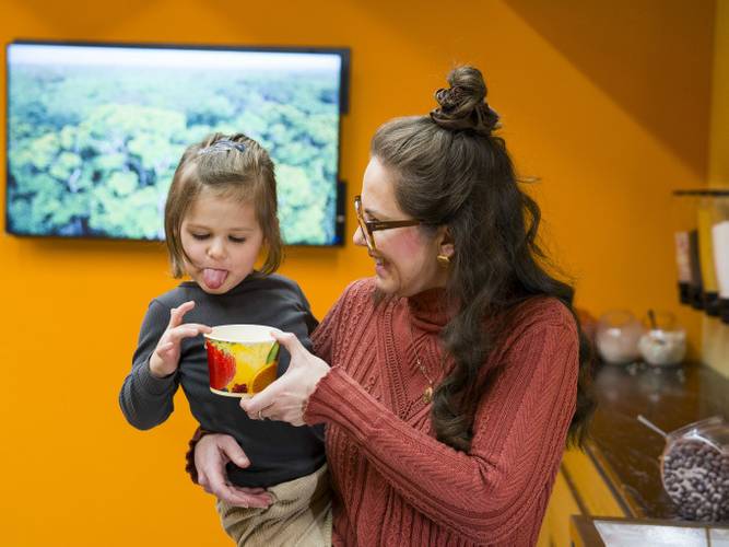 • Wähle aus drei Schokoladenmassen und vielen bunten Zutaten