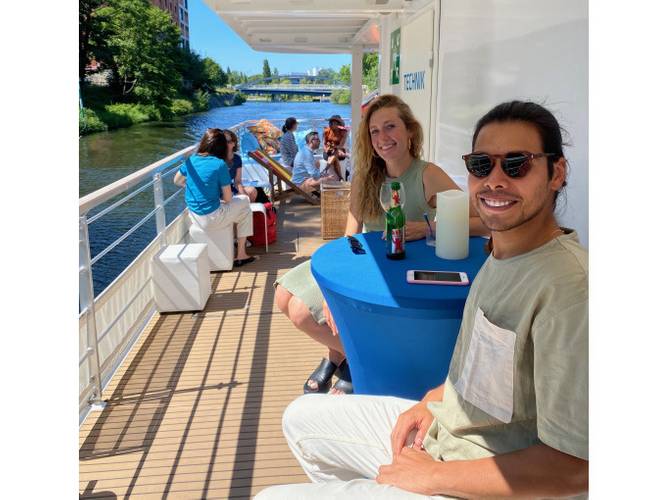 Genießen Sie eine kurze Ruhepause auf unserem emissionsfreien modernen Schiff und erfahren Sie alles Wissenswerte über Berlin, mit einem Drink in der Hand und einer entspannten Tour durch das Herz von Berlin!