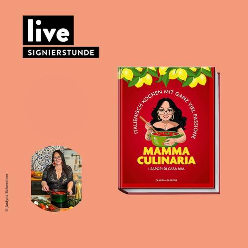 Kommt vorbei zur Signierstunde von Claudia Bastones, bekannt als mammaculinaria, am 18.04.2026 ab 15 Uhr in deinem Hugendubel in Berlin Steglitz! Millionen Menschen kennen und lieben sie aus den sozialen Medien, wo sie als warmherzige Gastgeberin in ihrer Küche steht und zeigt, wie man mit einfachen Zutaten köstliche Gerichte zubereiten kann. Ob Pasta, Aufläufe, Gemüsegerichte oder süßes Gebäck Claudias Rezepte sind nahbar, unkompliziert und voller Geschmack.