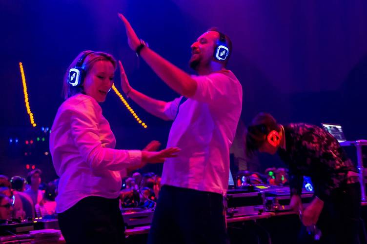 Bei der Silent Boat Party in Berlin tanzen Gäste gemeinsam über die Spree, aber mit der selbst gewählten Musik. Jeder Gast hat mit hochwertigen Kopfhörern die Wahl zwischen verschiedenen Musikkanälen. Ob die besten Beats der Charts oder zeitlose Klassiker – auf der Silent Boat Party findet sicher jeder die passende Musik. So lässt sich zusammen feiern, auch wenn der Musikgeschmack ein anderer ist.