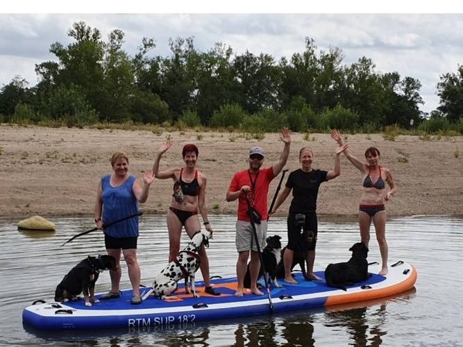 »» Brettgewöhnung für den Hund im flachen Wasser