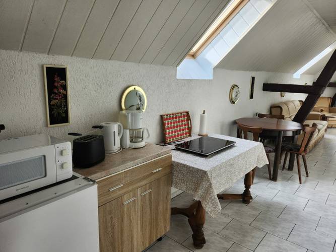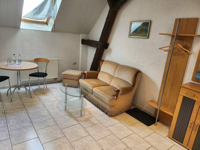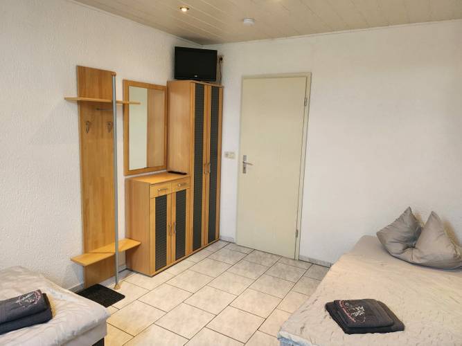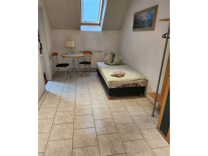 Unterkunft für 2 Personen, frische Bettwäsche + Handtücher, Garderobe, Fernseher, Heizung, Strom, Dusche, WC, kostenfereies WLAN. Der Garten mit Grillplatz, Parkplatz vor der Tür und eine passende Sitzecke im Garten können ebenfalls mit benutzt werden. Haustiere sind ebenfalls Willkommen. Kochecke mit Herd (kein Backofen) +Kaffemaschine sind auf dem Flur vorhanden.