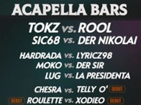 Acapella Bars – das Battle Rap Special in Berlin. Am 09.05. verwandelt sich das OC23 in der Langhansstraße in einen reinen Acapella-Schauplatz. Keine Beats, kein Schnickschnack – nur Bars, Delivery und direkte Duelle auf höchstem Level. Auf der Karte... mehrzu: Acapella Bars - Battlerap