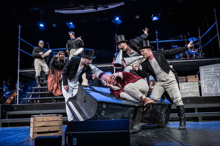 Die Inszenierung „Beethoven – Ein Leben“ ist ein historisches Künstlerportrait, inszeniert und mutig besetzt mit Kammerorchester, Chor, Band und einem 13-köpfigen Ensemble. Das Stück erzählt Beethovens Leben und Schaffen in neuer, spannender Weise gleich aus zwei musikalischen Perspektiven.