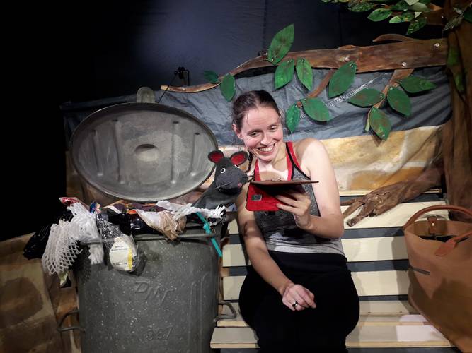 Das Besondere an dieser Inszenierung ist, dass das komplette Bühnenbild und die Figuren aus re-use (wiederverwertbaren) oder upgecycltem Material gebaut wurde.