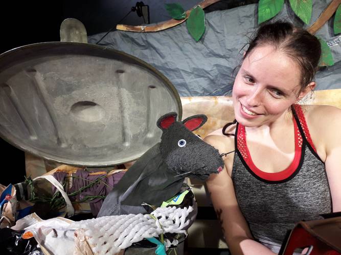 Das Besondere an dieser Inszenierung ist, dass das komplette Bühnenbild und die Figuren aus re-use (wiederverwertbaren) oder upgecycltem Material gebaut wurde.