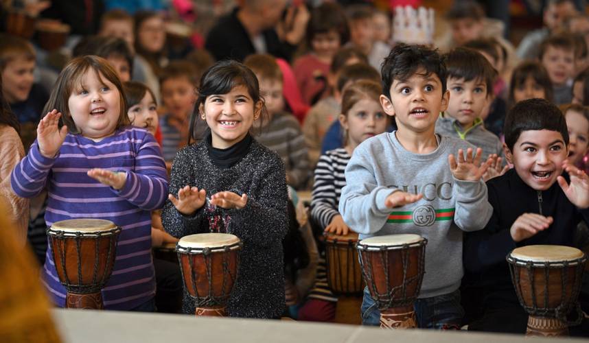 Ganz im Einklang mit der Musik spielen wir gemeinsam persische Handtrommeln, spielen mit den Klängen und lassen uns von der Musik bewegen. So finden wir einen gemeinsamen Rhythmus, der uns verbindet, und erleben, wie Musik uns zusammenführt.