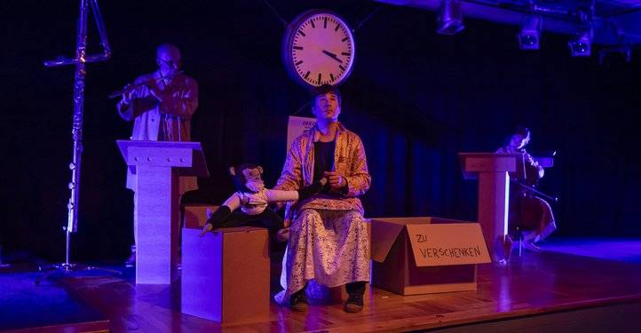 Künstler/Beteiligte: Tilmann Dehnhard (Flöten und Arrangement), Tabea Schrenk (Violoncello), Martin Clausen (Schauspiel und Text), Martin Lutz (Live-Elektronik), Sebastian Ellrich (Bühne und Kostüm), Christine Mellich (Idee und Dramaturgie)