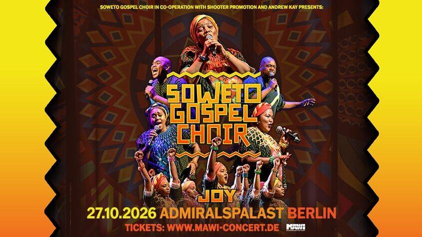 Der international gefeierte Soweto Gospel Choir aus Südakrika kehrt 2026 mit seiner neuen Tourneeproduktion nach Europa zurück: JOY! (Zulu: Injabulo) — eine kraftvolle musikalische Feier von Harmonie und unerschütterlicher Hoffnung.