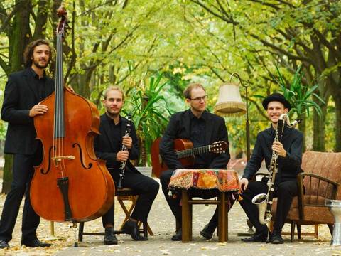Die vier Musiker der Berliner Band Bohai mixen jiddische Volks- und Tanzmusik mit weiteren Musikstilen wie Tango und Swing.