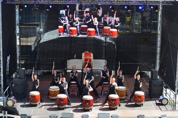 Japanisches Trommeln ist nicht nur was für die Ohren, sondern auch für die Augen und das Herz: große, ästhetische Bewegungen im Zusammenspiel mit kraftvollen, energiegeladenen Rhythmen auf schweren, großen Basstrommeln versetzen die Luft regelrecht in Schwingung, so dass sie körperlich spürbar werden. iki iki TAIKO 生き生き太鼓 aus Berlin bieten mit einem großen Ensemble einen Einblick auf die große Spannbreite japanischer Trommelkunst, die sie sowohl mit Respekt für die tradierte Kunstform als auch mit der ihr innewohnenden Lebensfreude auf die Bühne bringen.