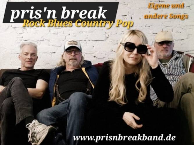 Das Besondere an pris’n break? Neben den klassischen Dauerbrennern aus Rock und Blues, haben pris'n break auch viele 80iger Kracher im Set, die coolsten Ladys Ihrer Zeit, wie Blondie, Kim Wilde, Cher oder Helen Schneider und einiges deutschsprachiges wie z.B. Westernhagen, Im Background unterstützen gesanglich Micha und Andi. Zusätzlich bringen wir auch eigene Country Songs mit im modernen Country Rock Style. Für jeden ist etwas dabei.Kommt vorbei und habt Spaß!