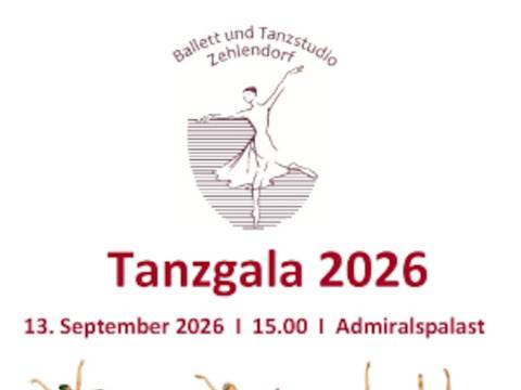 TANZGALA 2026 - Ballett und Tanzstudio Zehlendorf, Leitung: Franziska Rengger Vorhang auf und Bühne frei für die große TANZGALA 2026 vom Ballett- und Tanzstudio Zehlendorf! Die TANZGALA 2026 wird ein großes Erlebnis mit einem abwechslungsreichen und... mehrzu: Tanzgala 2026