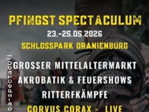 Mit dem Premium-Ticket erlebt ihr das Große Pfingst-Spectaculum im Schlosspark Oranienburg in seiner kompletten Vielfalt – drei Tage Mittelaltermarkt und volle Konzert-Power an beiden Konzertabenden. Mittelaltermarkt - 3 Tage (10:00-21:00 Uhr) Das Premium-Ticket... mehrzu: Pfingst-Spectaculum - Premium-Ticketmit Konzert-Arena im Schlosspark Oranienburg