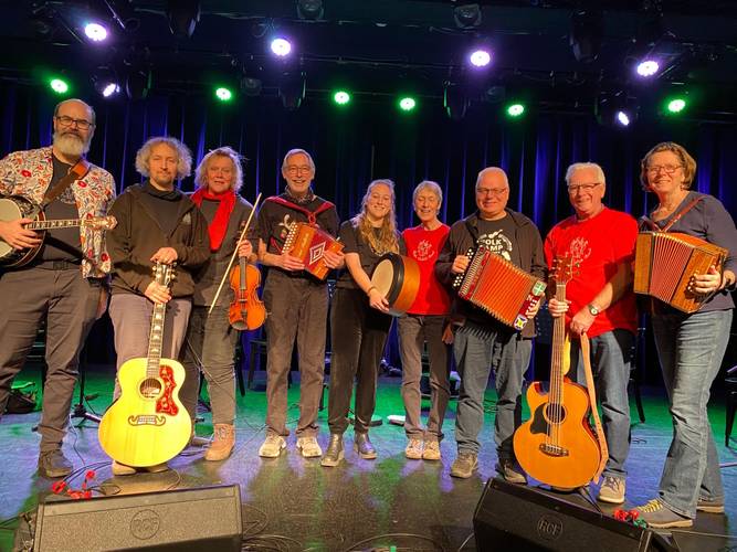 Im Dezember 2009 kamen in Berlin ein paar Musiker*innen und eine Tanzanleiterin zusammen, um im darauffolgenden Januar einen E-Ceilidh-Abend zu veranstalten. Was als einmaliges Experiment begann, war ein so durchschlagender Erfolg, dass wir beschlossen, das auf jeden Fall zu wiederholen. Also fuhren wir mit regelmäßigen E-Ceilidh-Abenden, im Winter drinnen, im Sommer draußen im Park, fort, die sich nach wie vor großer Beliebtheit erfreuen. Wir sind inzwischen eine Gruppe von etwa 8 gleichbleibenden Musiker*innen aus England, USA und Deutschland, die auch immer wieder von nationalen oder internationalen Gästen bereichert wird.