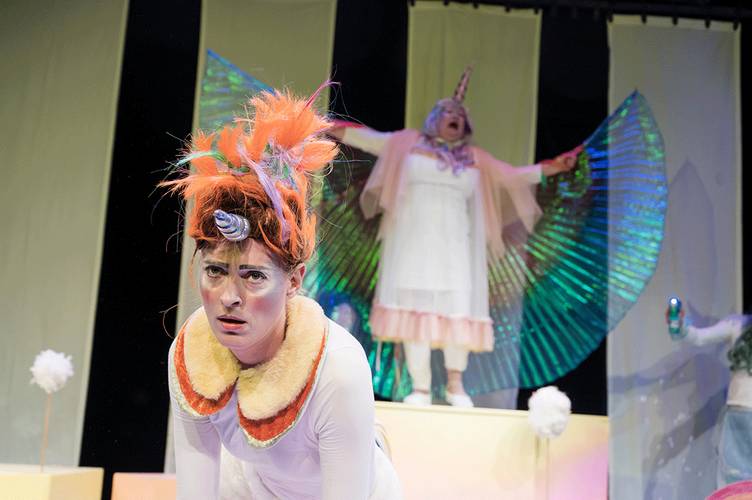 Märchenhaft minimalistisch: Bei ihrer Inszenierung adaptiert Regisseurin Birga Ipsen das unerschöpfliche Phantasievermögen von spielenden Kindern und erschafft aus wenigen Elementen eine magische Welt. Dialoge gehen fließend in Lieder über, die unter der Leitung von Matthias Witting mit Marimbaphon, Glockenspielen, Ocarina und Nasenflöte angereichert wurden.