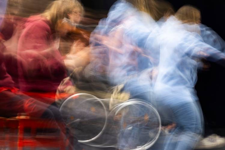 “Ich habe keine Zeit!” Was verbirgt sich hinter diesem Satz? Wieso leben so viele Menschen mit dem Gefühl, nicht frei über ihre Zeit verfügen zu können? Und wie sähe unsere Welt aus, wenn wir Zeit für das wirklich Wichtige hätten? Wenn Zeit gerecht verteilt wäre? Die Gegenwart hatten wir uns utopischer vorgestellt. Nun wollen wir herausfinden, wie wir unsere Lebenszeit zurückerobern können. Dafür haben wir Menschen zwischen 3 und 93 Jahren gefragt, wie sie ihren Alltag und ihre Zeit erleben. Ob im Altenheim, in der Pflege oder im Schichtdienst, ob als Eltern, Erkrankte oder Kinder, ob mit oder ohne Behinderung – im Leben unserer Gesprächspartner*innen verläuft die Zeit oft nicht so, wie sie es sich wünschen. Mit unserer Performance geben wir ihnen eine Stimme: Auf der Bühne entsteht ein Kaleidoskop der Zeitwahrnehmungen, das uns tiefer in die Logik des Zeitmangels blicken lässt. Choreografierte Erschöpfungsmomente treffen auf Oasen der Fürsorge. Zeitfresser werden klein gesungen. Momente für die Ewigkeit werden bis zur Atemlosigkeit heraufbeschworen. Die Uhren ticken mal laut, mal leise, gehen manchmal schneller und dann wieder langsamer. Wir schalten unsere Handys aus und halten inne. Nur einen Moment. Für die Zeit. Und für die Gerechtigkeit. Am Ende bleibt die Frage: Wie wollen wir in Zukunft mit Zeit umgehen? Das Kollektiv Frauen und Fiktion (FuF) entwickelt seit 2014 Performances, die auf umfassenden Recherchen basieren. In ihren Arbeiten verbinden sie Bühne, Kostüme, Video und Musik ästhetisch so eng miteinander, dass die Grenzen von Realität und Fiktion verschwimmen.
