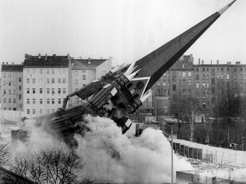 Der Turm der Versöhnungskirche, die direkt hinter der Mauer in Ostberlin lag, wurde am 28.01.1985 gesprengt.