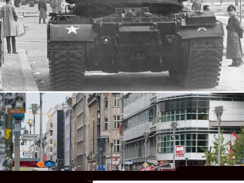Oder Sie befinden sich am Checkpoint Charlie, dem einst schwer gesicherten Grenzübergang, an dem sich 1961 russische und US-amerikanische Panzer bedrohlich gegenüberstanden und beinahe einen neuen Krieg ausgelöst hätten. Können Sie sich das vorstellen, wenn Sie heute an der von Touristen bevölkerten Straßenkreuzung stehen, keine Mauer weit und breit, stattdessen moderne Neubauten, Souvenirstände und als Grenzsoldaten verkleidete Schauspieler, die sich gegen Geld fotografieren lassen?