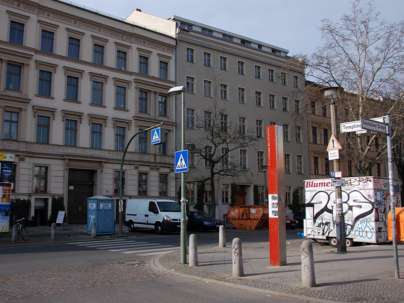 An die Bedeutung des Ortes während der Revolutionsjahre erinnert heute eine Stele am Teutoburger Platz in der Fehrbelliner Straße/Ecke Templiner Straße.