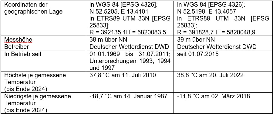 Tab. 3: Kenndaten der Klimastation Berlin-Alexanderplatz