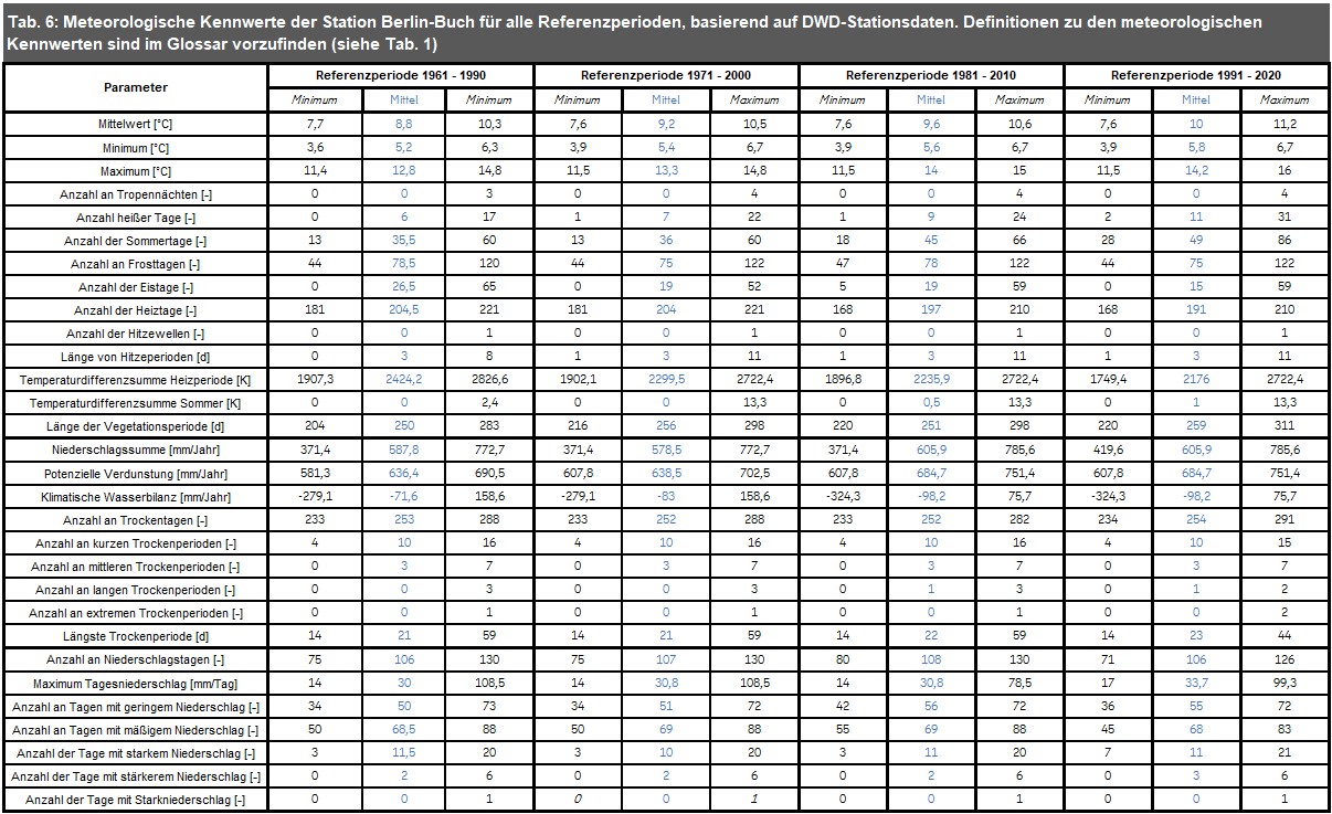 Tab. 5: Kenndaten der Klimastation Berlin-Buch