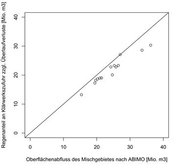Abb. 5: Vergleich des Oberflächenabflusses von ABIMO und Klärwerksdaten (KWB 2025)